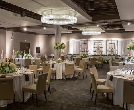Hudson is a State-of-the-art Wedding event Complex in Downtown Calgary With its tremendous views and state-of-the-art facilities, the Hudson is the ideal venue for couples looking for a modern and sophisticated space to say their I dos. Both pay tribute to HBC’s tradition and reflect its progress, the wedding venue’s decor combines its existing historic grandeur and charm with new, urban accents. Simple and sophisticated, the open concept wedding venue is well-suited for weddings of all styles. Located on the sixth floor of Hudson’s Bay’s heritage building, Hudson boasts impressive design, spectacular views, incredible versatility and outstanding food and service offerings. It consists of two unique venues; the contemporary Hudson Loft and the grand Century Hall, totalling over 18,000 square feet of event space. The wedding facilities found at the Hudson include two dividable spaces, the Loft and Flat, both of which can be bought out fully for wedding events. The Loft has a maximum capacity of 450 guests and the Flat can accommodate up to 300 guests. Hudson offers soon-to-be-married couples the following services for their big day: - Set up & Clean up - Catering/Bar - Event planning - Lighting/Sound - Service staff - All standard white linens (tablecloths and napkins) - All existing tables and chairs - Standard table flatware and glassware - Printed menus & Table numbers - Candles - In-house dance floor All wedding menus at the Hudson must be pre-set with a maximum choice of two appetizers, three entrées and a dessert). You have the option of customizing your menu with the venue's chef for an additional fee and outside cake is allowed.
