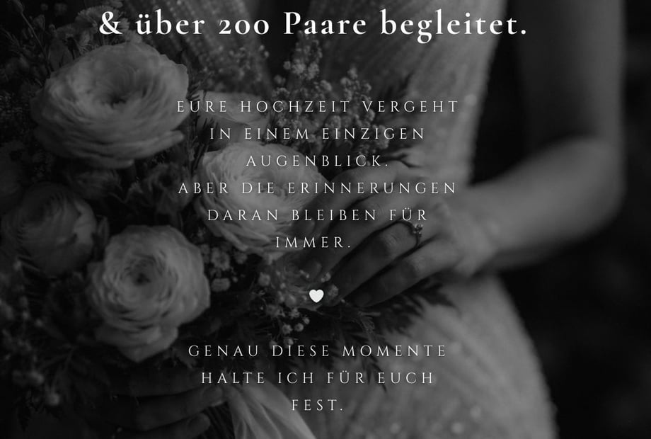 Genießt das Gefühl, vollkommen bei euch zu sein. Mit sicherem Gespür für echte Augenblicke und einem Zweitfotografen an meiner Seite bewahre ich jede Facette eures Glücks. So entsteht eine klare, präzise Dokumentation voller Präsenz – eine wertvolle Zeitkapsel, die eure Liebe lebendig hält. Ich freue mich darauf, eure Geschichte in Bildern zu erzählen: klar, wertvoll und unverstellt. Für immer.