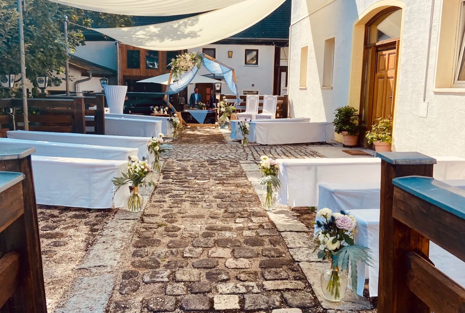 Wenn ihr eine romantische, l�ndliche Atmosph�re sucht, k�nnte die Gutshof Scheune auf Gut Sedlbrunn ideal sein. Sie bietet viel Platz und eine rustikale Kulisse, womit sie sich wunderbar f�r Boho- oder Vintage-Hochzeiten eignet.