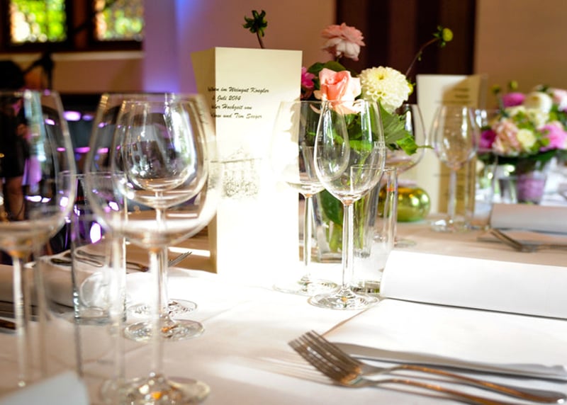 Weingut Vollmayer in der Nähe von Stuttgart: Hier schlagt ihr gleich zwei Fliegen mit einer Klappe, denn ihr habt Weingut und romantische Scheune in einem. Mit bis zu 120 Gästen könnt ihr hier einen atemberaubenden Blick auf die Landschaft genießen.