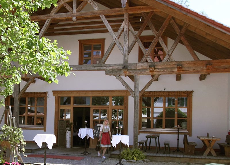 Gut Sonnenhausen in der Nähe von München: Das historische Gut verfügt über eine wunderschöne Scheune, in der ihr mit bis zu 160 Gästen feiern könnt. Das Gut verfügt außerdem über einen tollen Garten und eine bezaubernde Kapelle.
