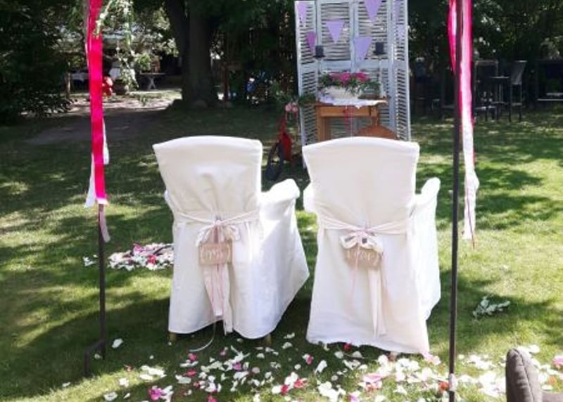 Kuhstall in der Nähe von Hamburg: Der umgebaute Kuhstall verfügt über ein geräumiges Interieur und bietet in gemütlicher Atmosphäre Platz für bis zu 120 Gäste. Auch hier gibt es einen schönen Garten für Zeremonien und Empfänge im Freien.