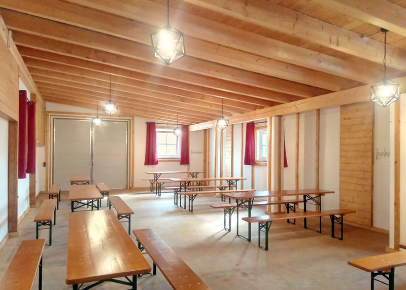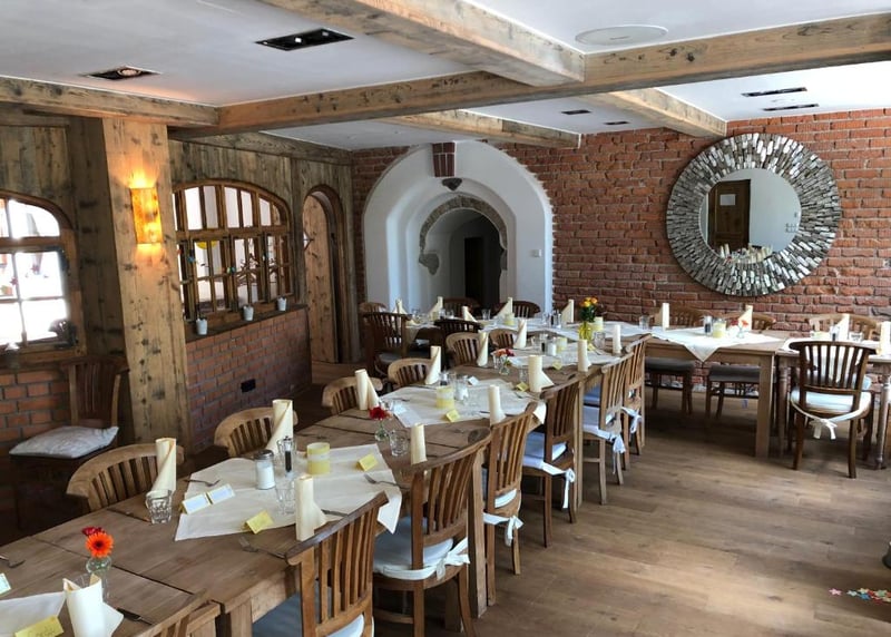 Kuhstall in der Nähe von Hamburg: Der umgebaute Kuhstall verfügt über ein geräumiges Interieur und bietet in gemütlicher Atmosphäre Platz für bis zu 120 Gäste. Auch hier gibt es einen schönen Garten für Zeremonien und Empfänge im Freien.