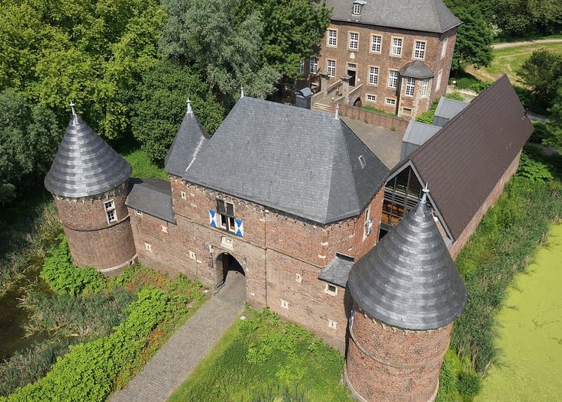 Burg Bergerhausen (Nordrhein-Westfalen): In dieser historischen Burg in Deutschland k�nnt ihr mit bis zu 300 G�ste in festlichem Ambiente feiern, umgeben von einer malerischen Parklandschaft.