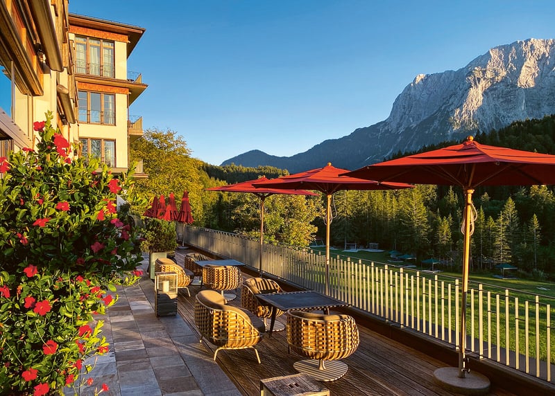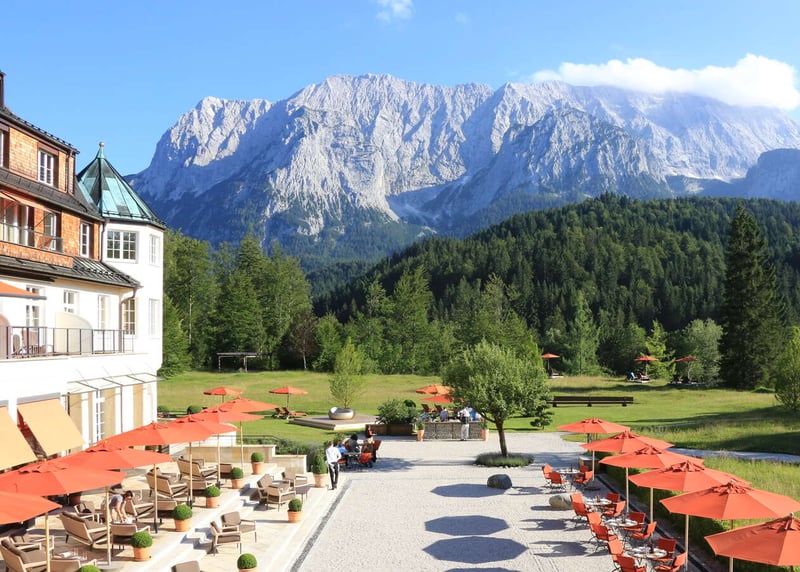 Schloss Elmau (Bayern): Umgeben von den bayerischen Alpen, vereint dieses Schloss Luxus und Natur in einer einzigartigen Atmosph�re � ideal f�r eine exklusive Hochzeit.