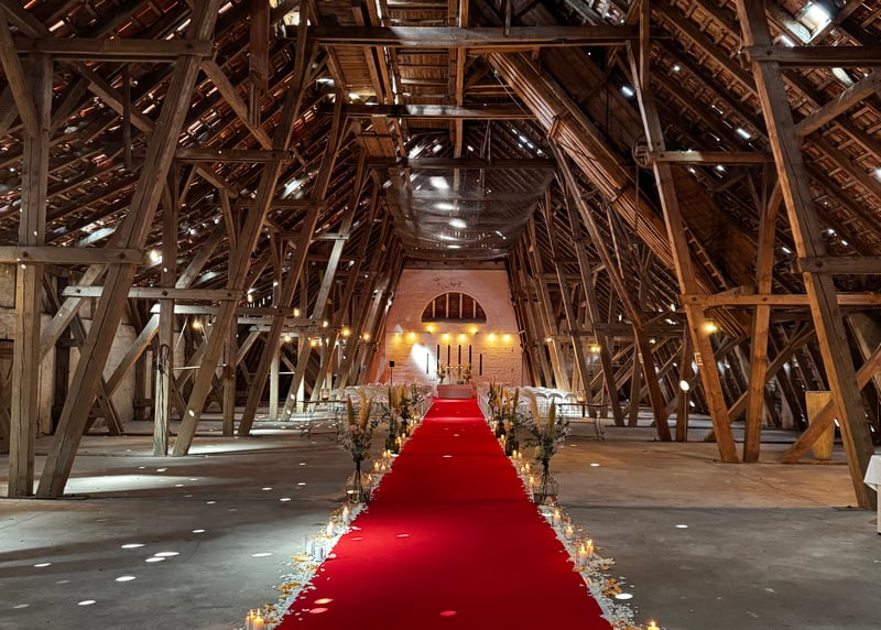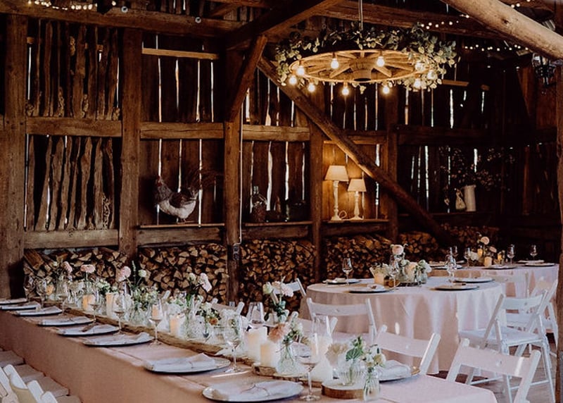 Setzt auf nat�rliche Materialien wie Holz, Leinen und Jute, sie unterstreichen den rustikalen Charme der Scheune perfekt. H�ngende Lichterketten oder rustikale Kronleuchter schaffen eine warme und romantische Atmosph�re.