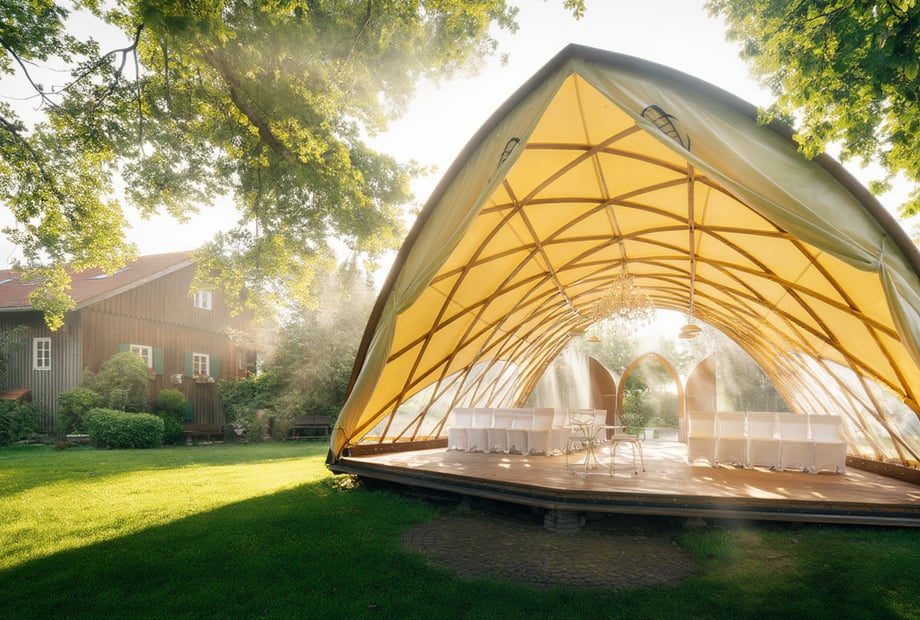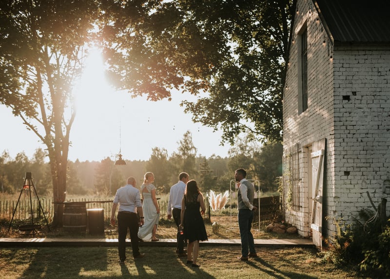 Vergesst nicht, auch den Au�enbereich mit Lichterketten oder Fackeln in Szene zu setzen. So wird eure Hochzeit in einer Scheune in Deutschland zu einem unvergesslichen, stimmungsvollen Fest!
