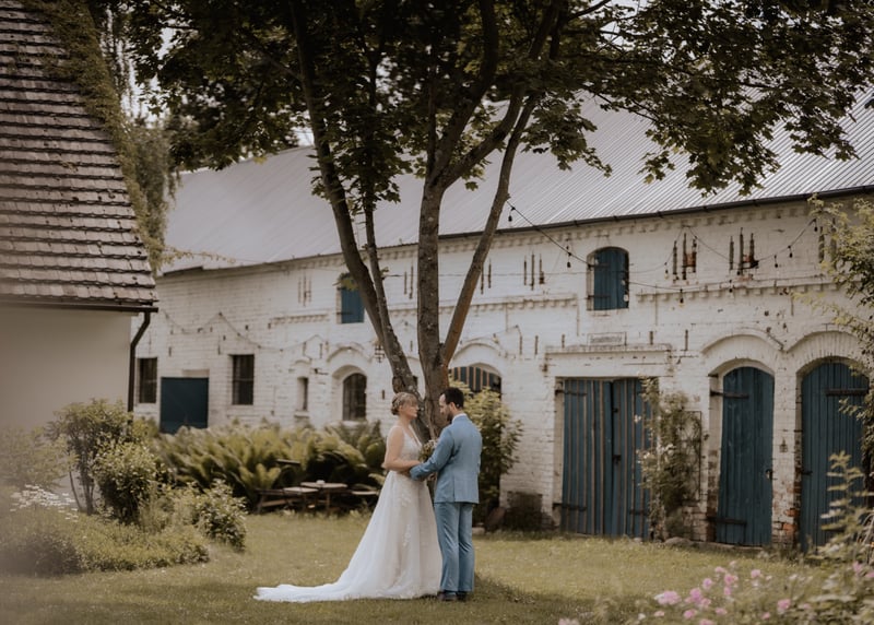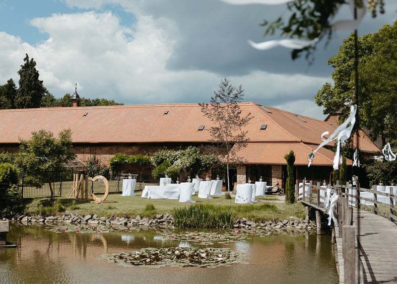 Altes Landgut am See (Niedersachsen): Wie wäre es mit einer Scheune in Deutschland, die direkt an einem See liegt? Diese Location bietet eine wunderbare Kombination aus Wasserblick und rustikalem Charme – ideal für eine romantische Boho-Hochzeit.
