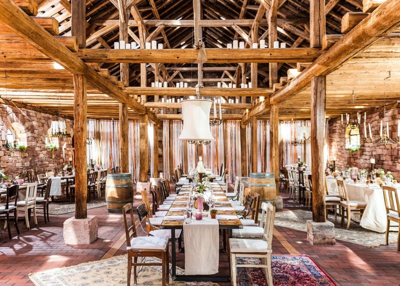Hofgut Hohenstein (Hessen): In dieser romantischen Scheune in Deutschland k�nnt ihr eure Hochzeit feiern und eure G�ste gleichzeitig in gem�tlichen, historischen Zimmern des Hofguts unterbringen.