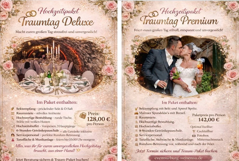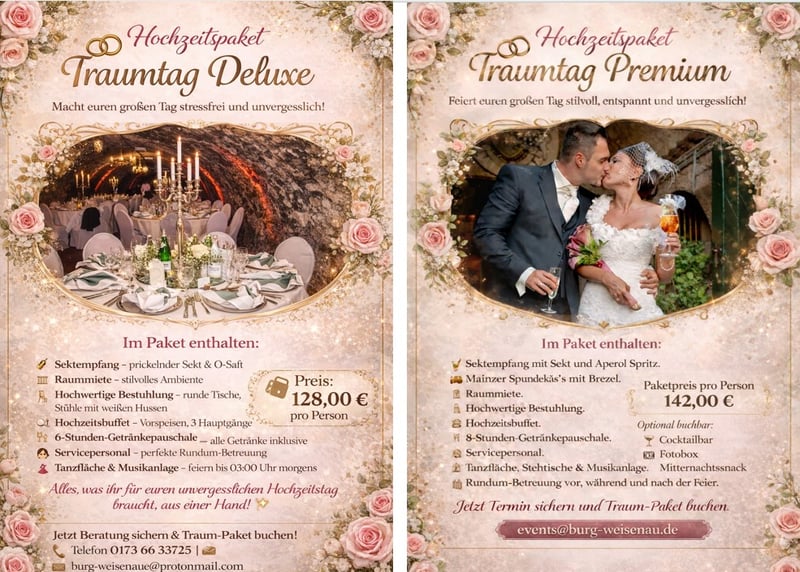 Das sind natürlich nur einige Beispiele für die vielen schönen Schlösser in Deutschland, die eine romantische und einzigartige Kulisse für eure Hochzeit bieten. Es lohnt sich, verschiedene davon zu besuchen, um das perfekte Schloss für euren besonderen Tag zu finden.