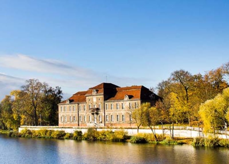 Schloss Moritzburg Schloss Moritzburg ist ein Barockschloss aus dem 18. Jahrhundert, das in der Nähe von Dresden liegt. Es ist von einem wunderschönen See und Park umgeben und besonders beliebt, seit es im tschechischen Märchenfilm "Drei Haselnüsse für Aschenbrödel" als Kulisse zu sehen war.