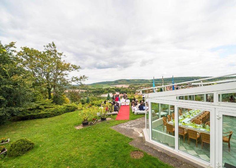 Weingut Vollmayer in der Nähe von Stuttgart: Hier schlagt ihr gleich zwei Fliegen mit einer Klappe, denn ihr habt Weingut und romantische Scheune in einem. Mit bis zu 120 Gästen könnt ihr hier einen atemberaubenden Blick auf die Landschaft genießen.