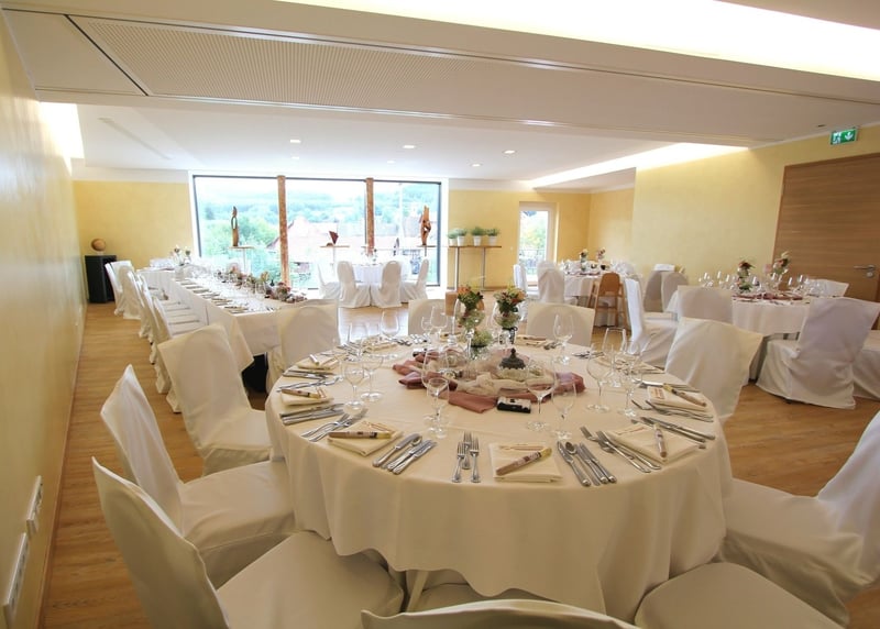 Weingut Vollmayer in der Nähe von Stuttgart: Hier schlagt ihr gleich zwei Fliegen mit einer Klappe, denn ihr habt Weingut und romantische Scheune in einem. Mit bis zu 120 Gästen könnt ihr hier einen atemberaubenden Blick auf die Landschaft genießen.