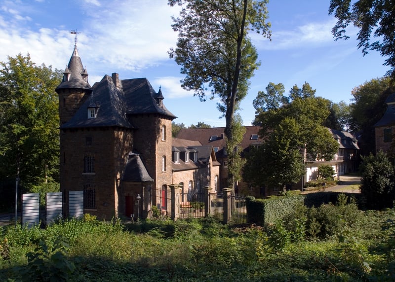 Burg Bergerhausen (Nordrhein-Westfalen): In dieser historischen Burg in Deutschland k�nnt ihr mit bis zu 300 G�ste in festlichem Ambiente feiern, umgeben von einer malerischen Parklandschaft.