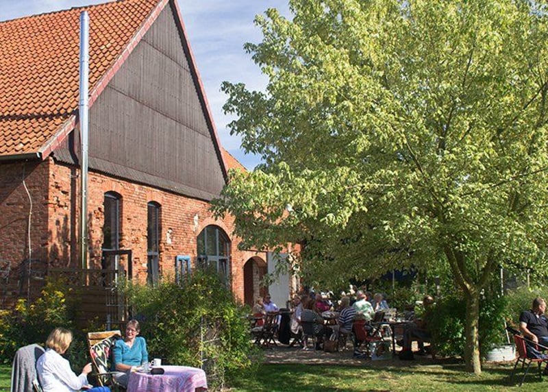 Kuhstall in der Nähe von Hamburg: Der umgebaute Kuhstall verfügt über ein geräumiges Interieur und bietet in gemütlicher Atmosphäre Platz für bis zu 120 Gäste. Auch hier gibt es einen schönen Garten für Zeremonien und Empfänge im Freien.