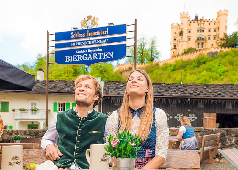 Schloss Neuschwanstein (Bayern): Mit den bayerischen Alpen im Hintergrund bietet euch dieses Schloss eine absolut märchenhafte Atmosphäre für eure Hochzeit in Deutschland.