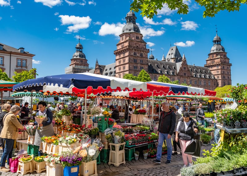 Schloss Johannisburg Das in Aschaffenburg gelegene Schloss Johannisburg ist ein Renaissance-Schloss aus dem 17. Jahrhundert. Es bietet eine atemberaubende Kulisse für eine märchenhafte Hochzeit, besonders wegen des Schlossgartens, der den Spitznamen "Bayerisches Nizza" hat.