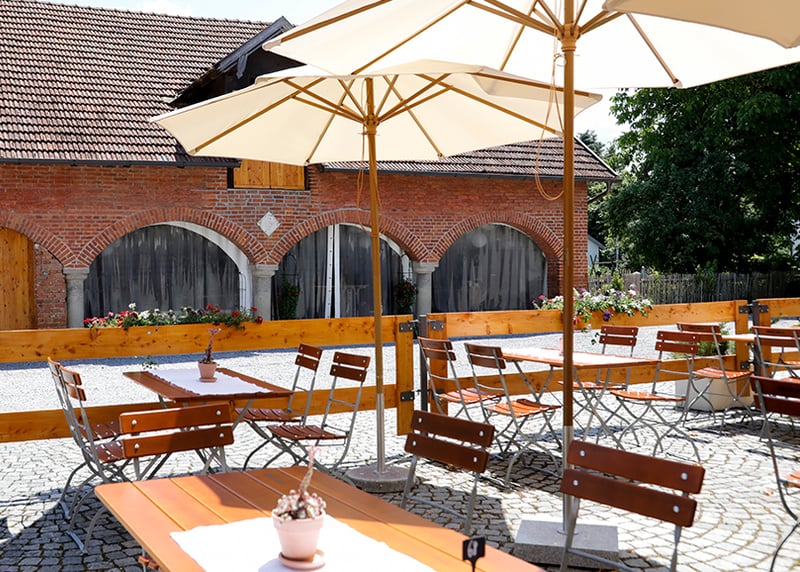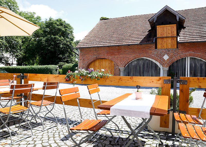 Gut Sonnenhausen in der Nähe von München: Das historische Gut verfügt über eine wunderschöne Scheune, in der ihr mit bis zu 160 Gästen feiern könnt. Das Gut verfügt außerdem über einen tollen Garten und eine bezaubernde Kapelle.