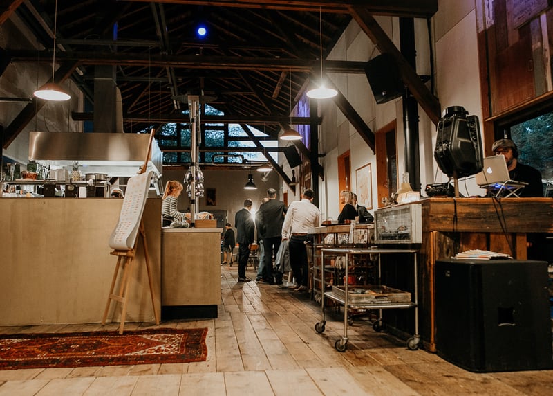 Scheunencafé in der Nähe von Frankfurt: Die rustikale Scheune mit freiliegenden Holzbalken bietet Platz für bis zu 150 Gäste. Toll für den Sommer: Es gibt einen schönen Außenbereich für Zeremonien und Empfänge.