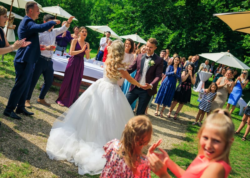 Zu den wichtigsten Ausgaben, die zu den Kosten einer Hochzeit in Deutschland beitragen, gehören der Veranstaltungsort, das Catering, Blumen und Dekoration, Musik, Fotografie und Videografie sowie das Brautkleid und die Kleidung des Bräutigams.
