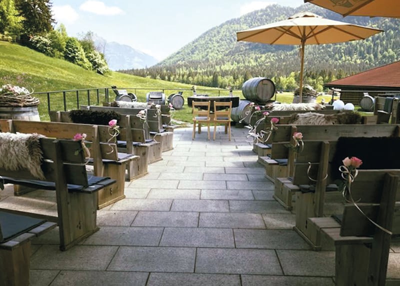 Schloss Elmau (Bayern): Umgeben von den bayerischen Alpen, vereint dieses Schloss Luxus und Natur in einer einzigartigen Atmosph�re � ideal f�r eine exklusive Hochzeit.