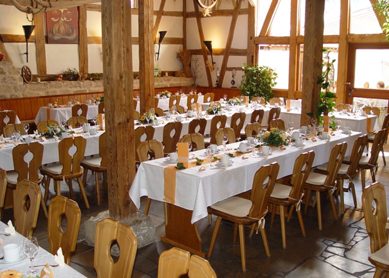 • Weingut Vollmayer in der Nähe von Stuttgart: Hier schlagt ihr gleich zwei Fliegen mit einer Klappe, denn ihr habt Weingut und romantische Scheune in einem. Mit bis zu 120 Gästen könnt ihr hier einen atemberaubenden Blick auf die Landschaft genießen.