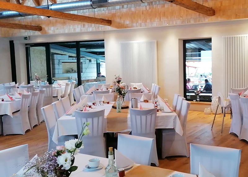 Weingut Vollmayer in der Nähe von Stuttgart: Hier schlagt ihr gleich zwei Fliegen mit einer Klappe, denn ihr habt Weingut und romantische Scheune in einem. Mit bis zu 120 Gästen könnt ihr hier einen atemberaubenden Blick auf die Landschaft genießen.