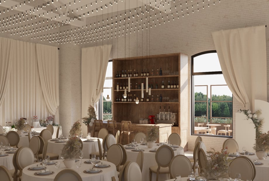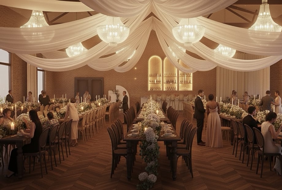 Diese generelle Lässigkeit bei Hochzeiten in Essen zeigt sich auch in puncto Sitzordnung: Geschwungene Tafeln, die einladend wirken und für mehr Interaktion unter den Gästen sorgen, sind 2025 gefragter als runde Tische. Die sogenannten "Serpentine Tables" lassen nämlich die gesamte Hochzeitslocation moderner erscheinen und lockern die Atmosphäre auf.