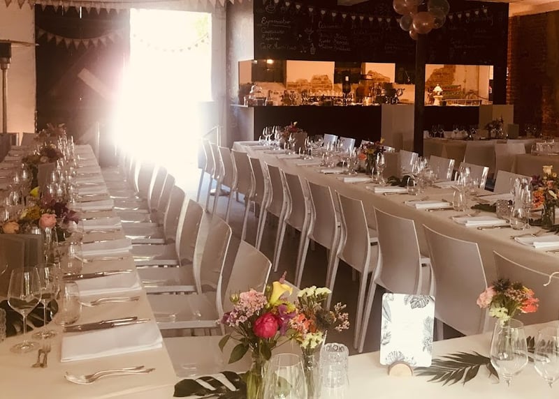 Kuhstall in der Nähe von Hamburg: Der umgebaute Kuhstall verfügt über ein geräumiges Interieur und bietet in gemütlicher Atmosphäre Platz für bis zu 120 Gäste. Auch hier gibt es einen schönen Garten für Zeremonien und Empfänge im Freien.
