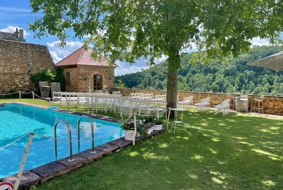 Das historisches Mühlenanwesen bietet neben romantischen Gärten & einer Trauwiese am Bach einen gemütlichen Innenhof für Ihre Feier. Als Wetteralternative stehen 3 Gewölbe zur Verfügung. Das gesamte Areal ist mit einem top Licht-& Tonsystem versehen.