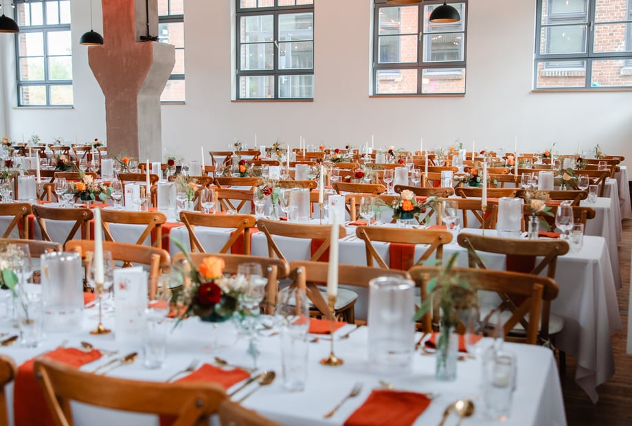Alte Maschinenhalle Solingen Industrieller Charme trifft Luxus: Die alte Halle ist ein echter Hingucker und sorgt mit riesigen Fenstern, toller Dekoration und stimmungsvollen Lichtern für eine einzigartige Kulisse für euren großen Tag in Solingen.