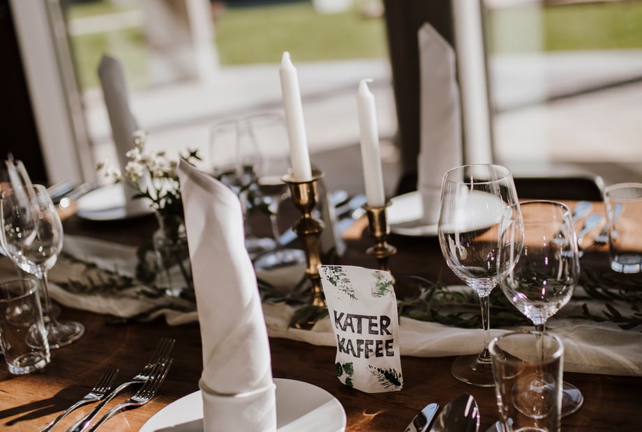 Rechnen Sie mit Catering-Kosten zwischen 80 € und 180 € pro Gast. Diese beinhalten oft Menü/Buffet und eine Getränkepauschale.