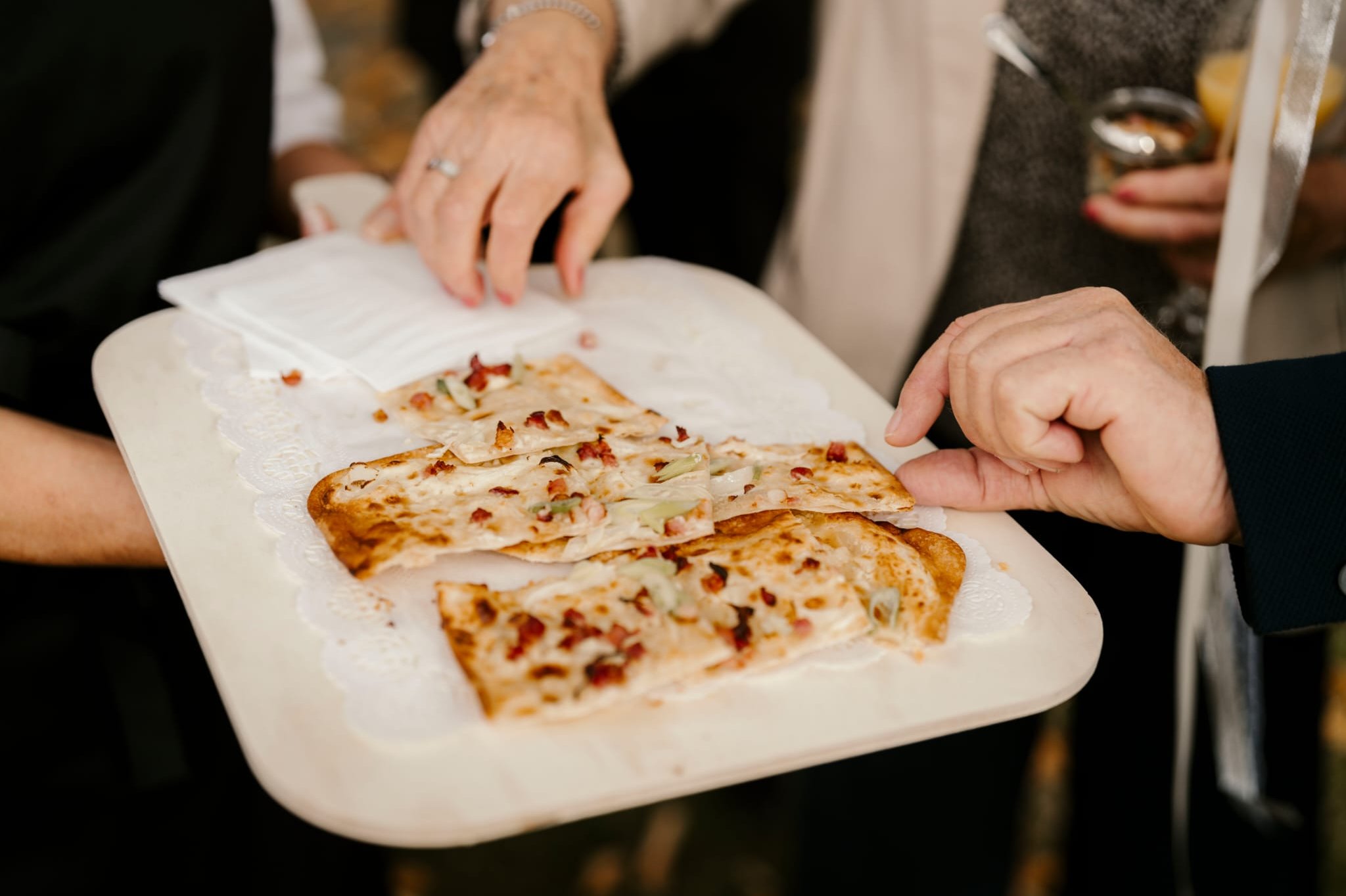 Auf Wunsch übernehmen wir Sektempfang & Fingerfood, Speisen, Getränke, Servicepersonal, Auf- und Abbau sowie Extras wie Mitternachtssnacks oder Genussstationen.