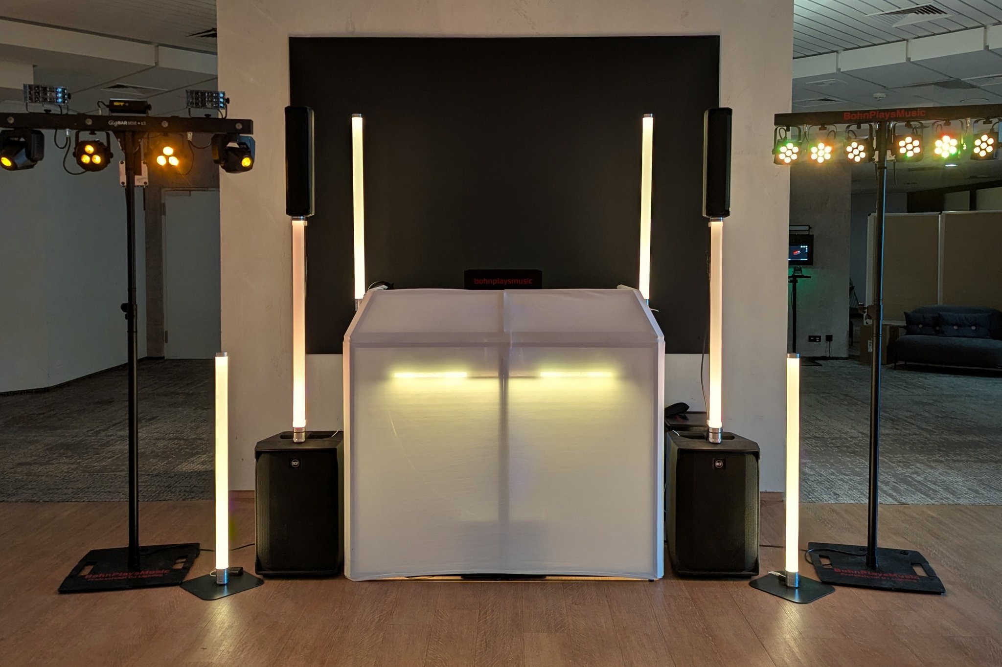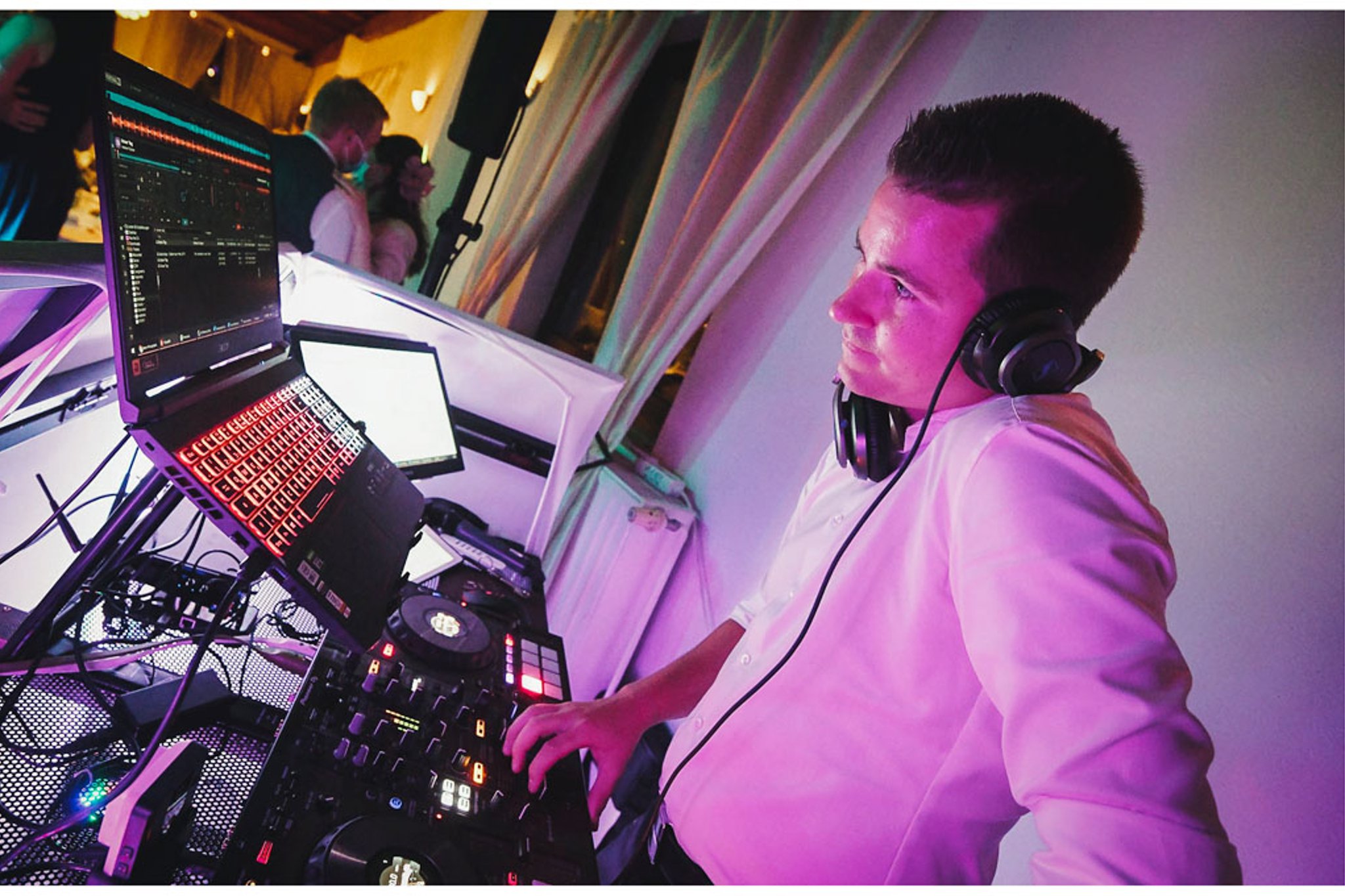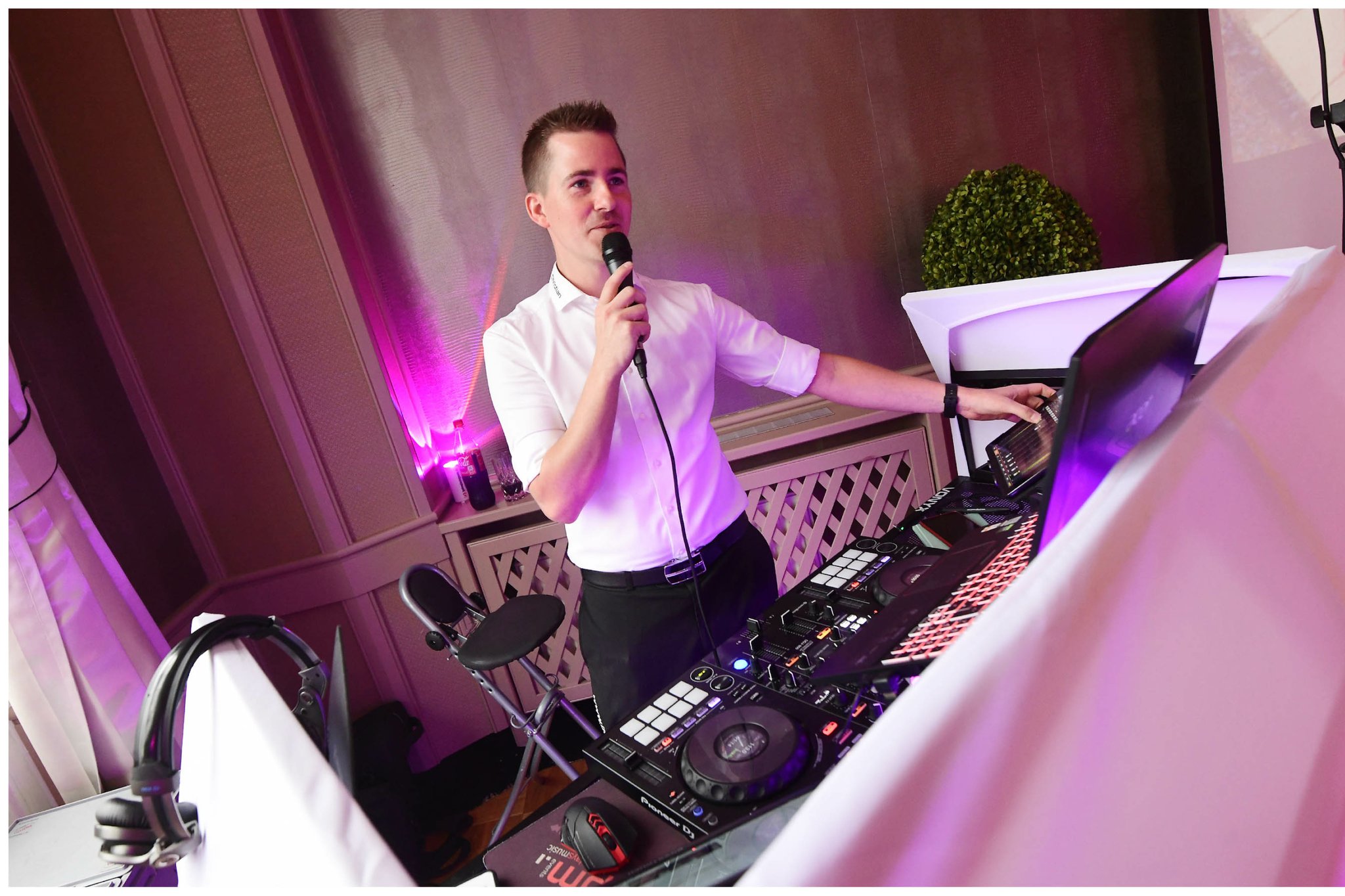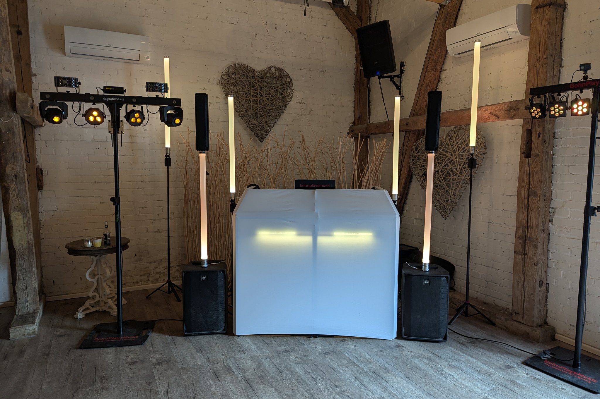 Fast alles! Immer dabei ist das nötige Equipment für den DJ-Service: PC, Controller, Mikrofone, Mischpult, Lautsprecher, Stative, Verkabelungen, etc. Selbst Tisch und Stuhl werden von mir mitgebracht. Der Event-Service rundet das Angebot dann noch ab.