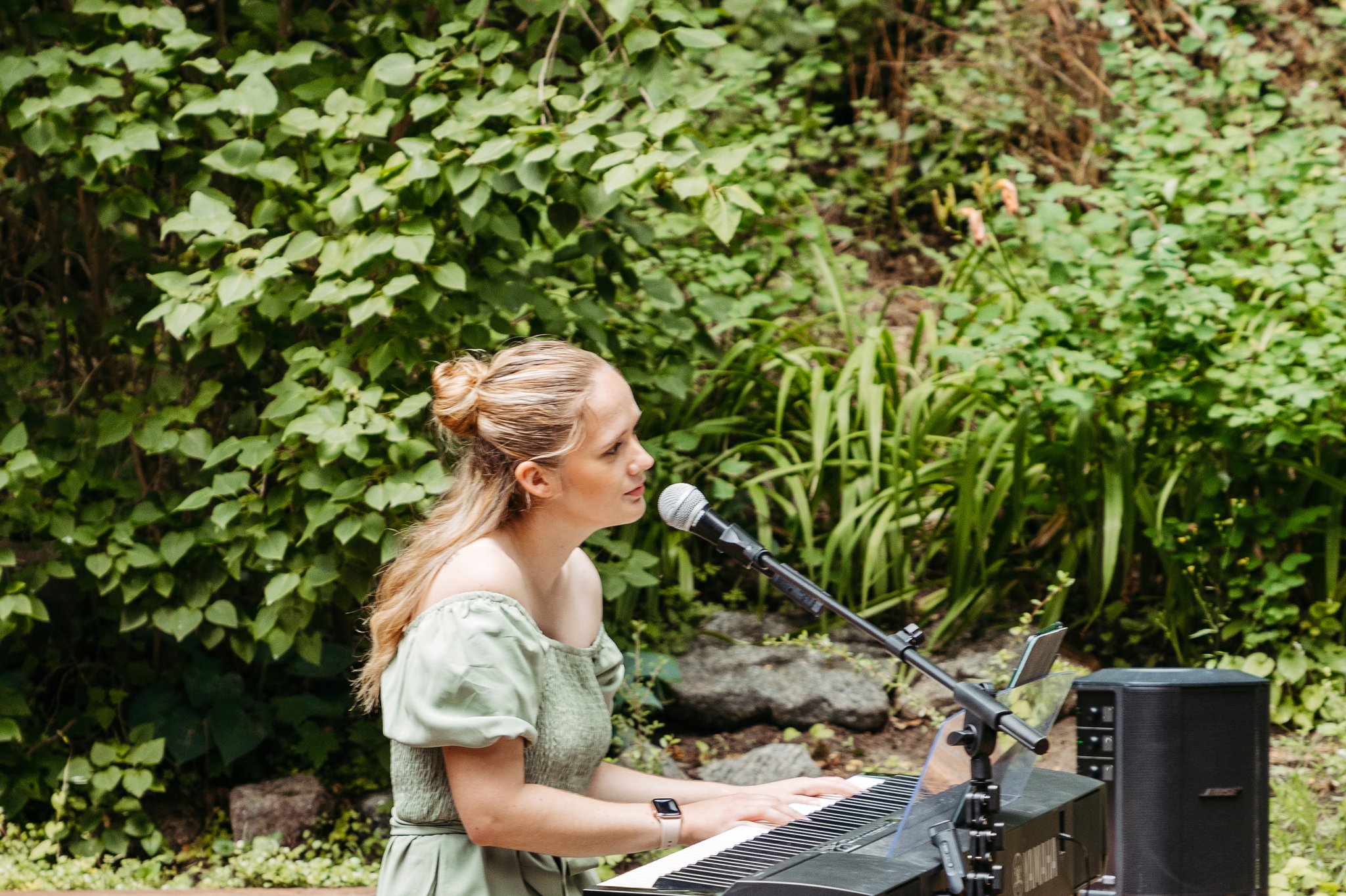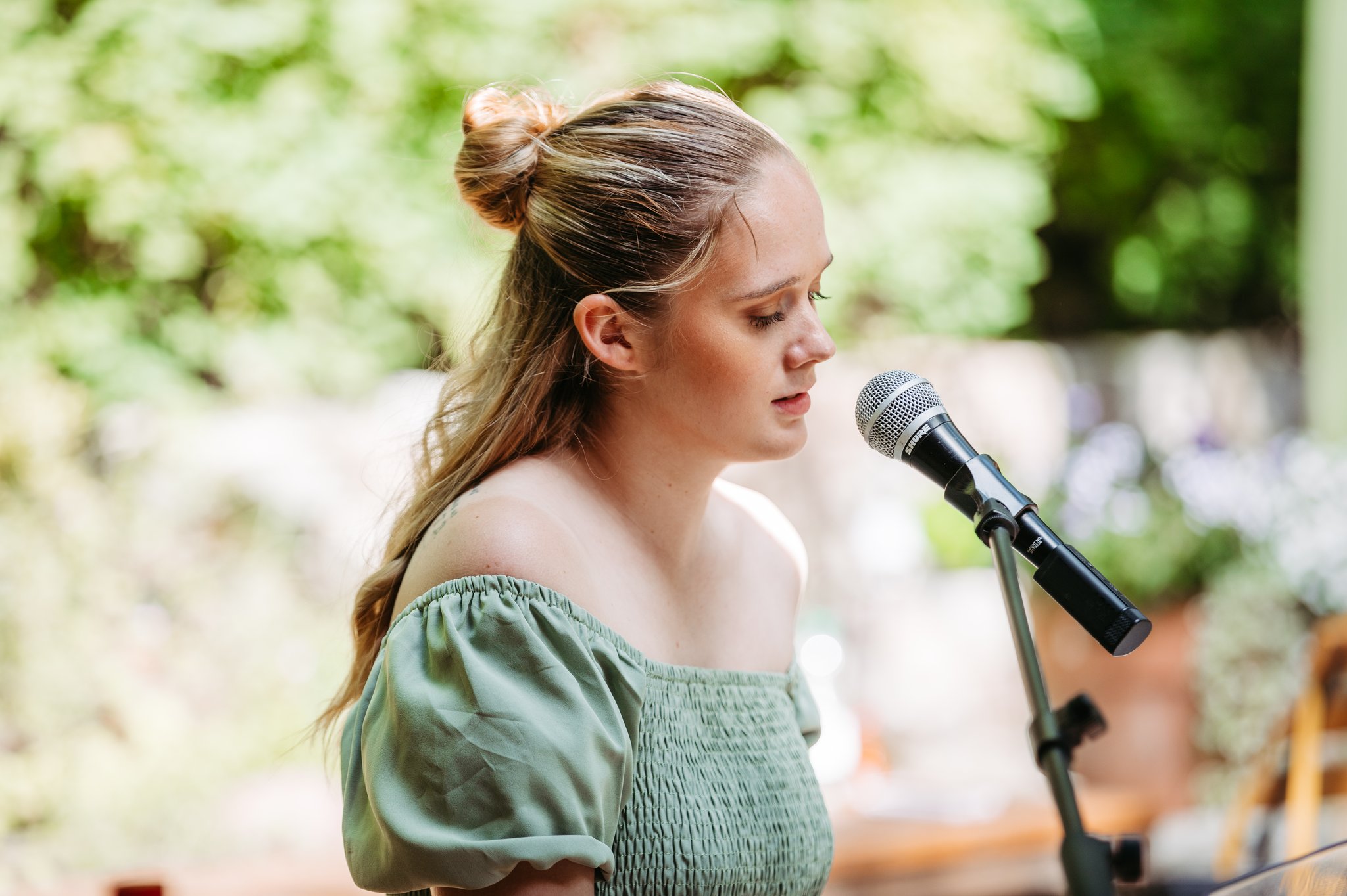 Bereits mit 5 Jahren begann ich mit dem Klavierunterricht. 2011 kam dann auch Gesangsunterricht in den Bereichen Pop und Musical dazu. Seither darf ich kleine und große Bühnen mit meiner Stimme und meiner Musik füllen. Nach meinem Abitur und einem Auslandsaufenthalt in Neuseeland, qualifizierte ich mich für einen Studienplatz am British-Irish-Modern-Music Institute in Berlin. Dort studierte ich „Popular Music Performance – Vocals“, sprich Popularmusik im Hauptinstrument Gesang und habe im Sommer 2024 meinen Bachelor of Music mit einer „First Class Honours“ absolviert. Durch die vielseitigen Bildungsmöglichkeiten in Bereichen wie Musikproduktion, Session Singing, Background Singing, Musikbusiness, Bühnenperformance und Gesangstechnik, konnte ich mich in den letzten Jahren unter Tutoren wie Stacy Taylor, Andreas Ohnhaus, Katarina Holmberg und Martin Stumpf musikalisch ganzheitlich weiterentwickeln. Während meines Studiums durfte ich auch als Backgroundsängerin für Musiker wie Kelvin Jones Erfahrungen sammeln. Bereits 2020 habe ich mich selbstständig gemacht und begleite seither vermehrt Hochzeiten, öffentliche Veranstaltungen, private Feste, Firmenevents uvm. musikalisch. Besonders die Begleitung von Hochzeiten ist mir sehr ans Herz gewachsen und es ist jedes Mal aufs Neue wunderschön, Teil eines solch wichtigen Tages im Leben zweier Menschen zu werden und diesen noch emotionaler zu gestalten.