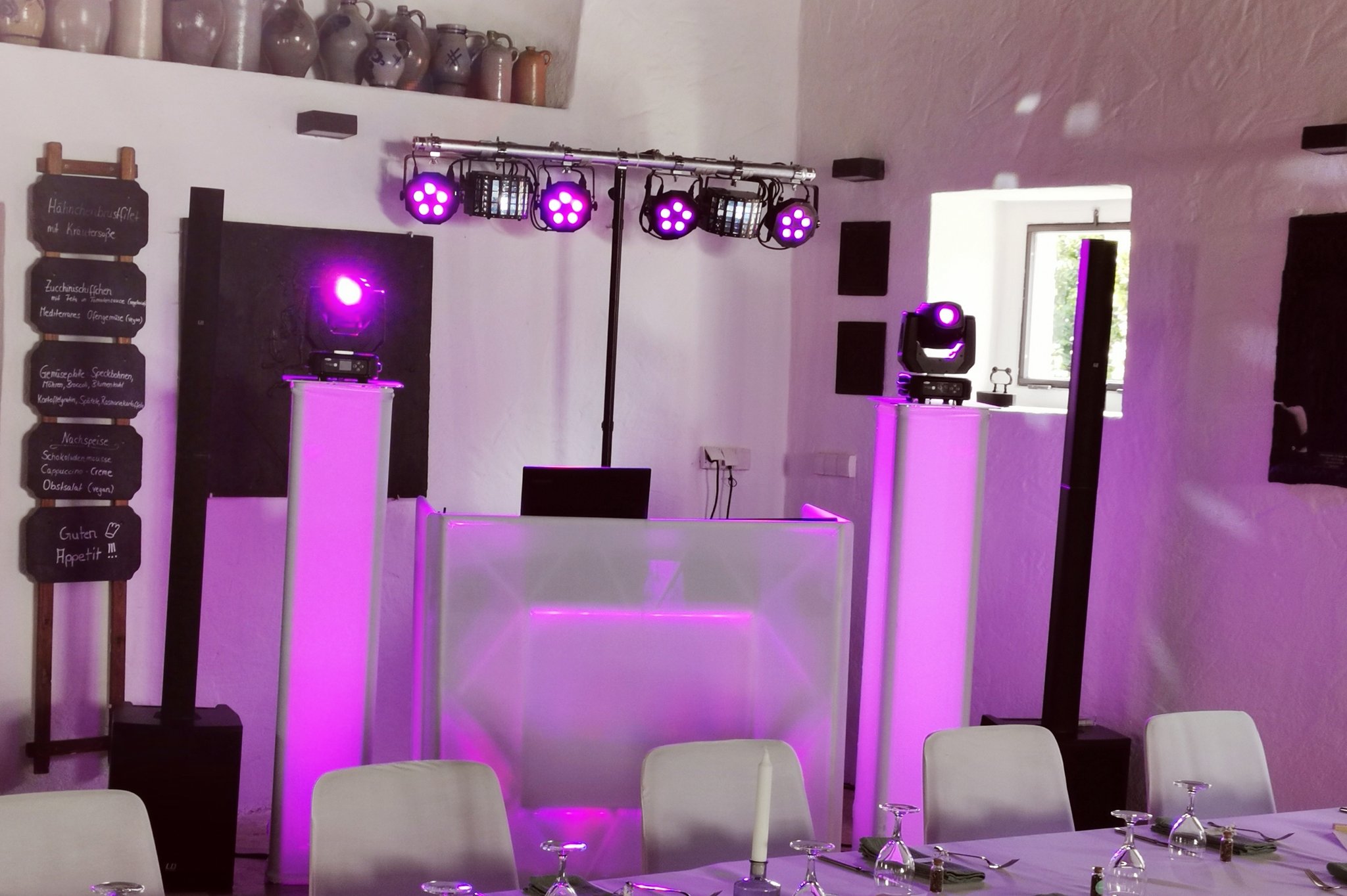 Eine große Auswahl von verschiedensten Beschallungs- und Lichtanlagen findet ihr in meinen DJ-Paketen. Diese können auf Ihre Wünsche angepasst oder ergänzt werden. In der Rubrik weitere Technik findet ihr u.a. Ambientebeleuchtungen, Nebelmaschinen u.v.m.
