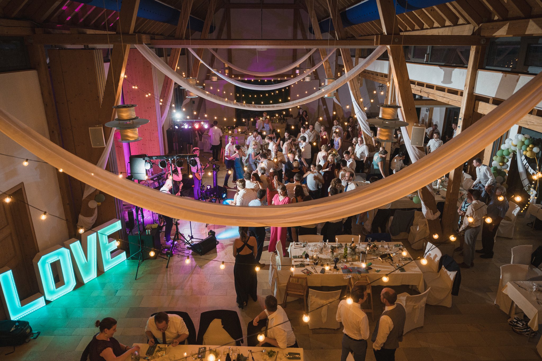 Dabei bekommt ihr bei uns ein echtes Rundum-sorglos-Paket: professionelle Ton- und Lichttechnik, Funkmikrofone für Reden, stilvolle Moderation und eine persönliche Betreuung von der ersten Planung bis zur letzten Zugabe.