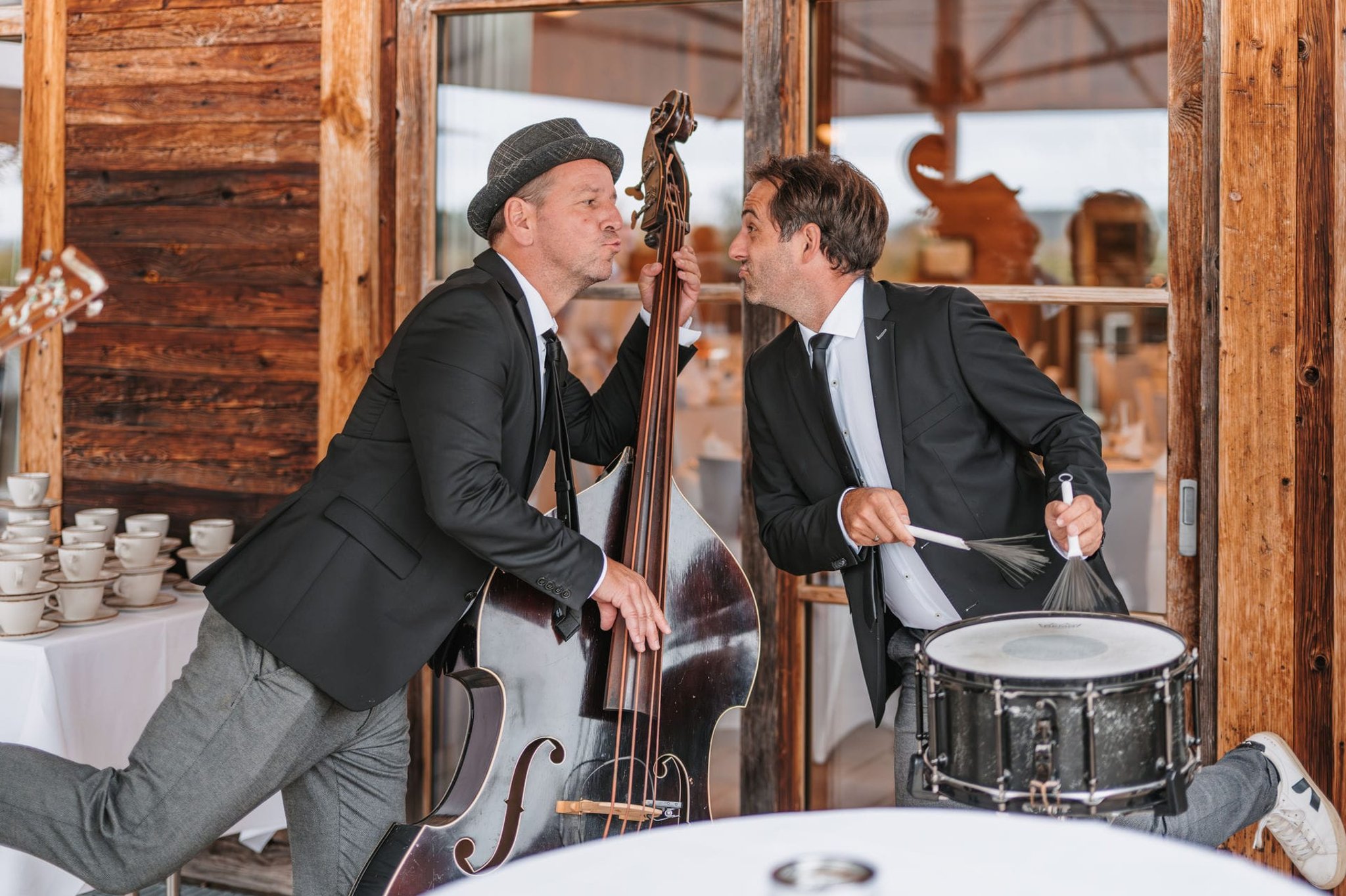 Mit unseren akustischen Instrumenten (Kontrabass, Saxophon, Gitarre und kleinem Drumset) sorgen wir für eine stilvolle Atmosphäre.