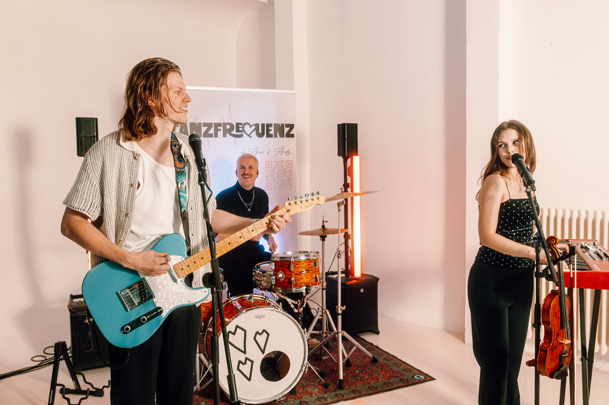 Tanzfrequenz ist ein Trio, klingt aber dank mehrstimmigem Gesang und cleverem Setup wie eine große Band. Trauungen und Sektempfang spielen wir meistens Solo oder im Duo.
