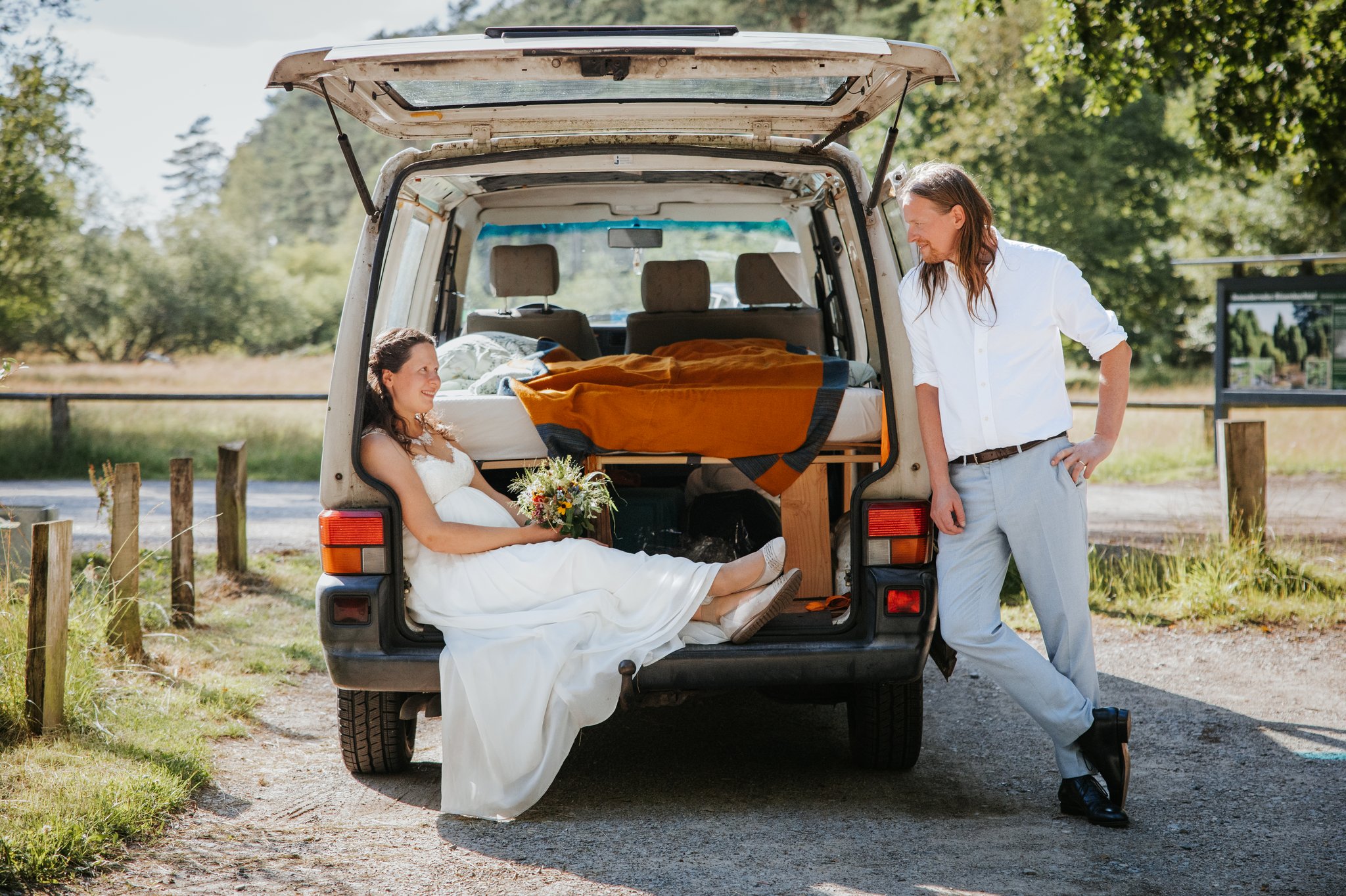 Das Wetter könnt weder ihr, noch wir beeinflussen. Bei leichtem Schauer hat man oft die Möglichkeit einen trockenen Moment abzuwarten und dann ein paar schöne Portraits zu machen. Oft bietet sich die Feier-Location auch an, um innen einige Aufnahmen zu machen.