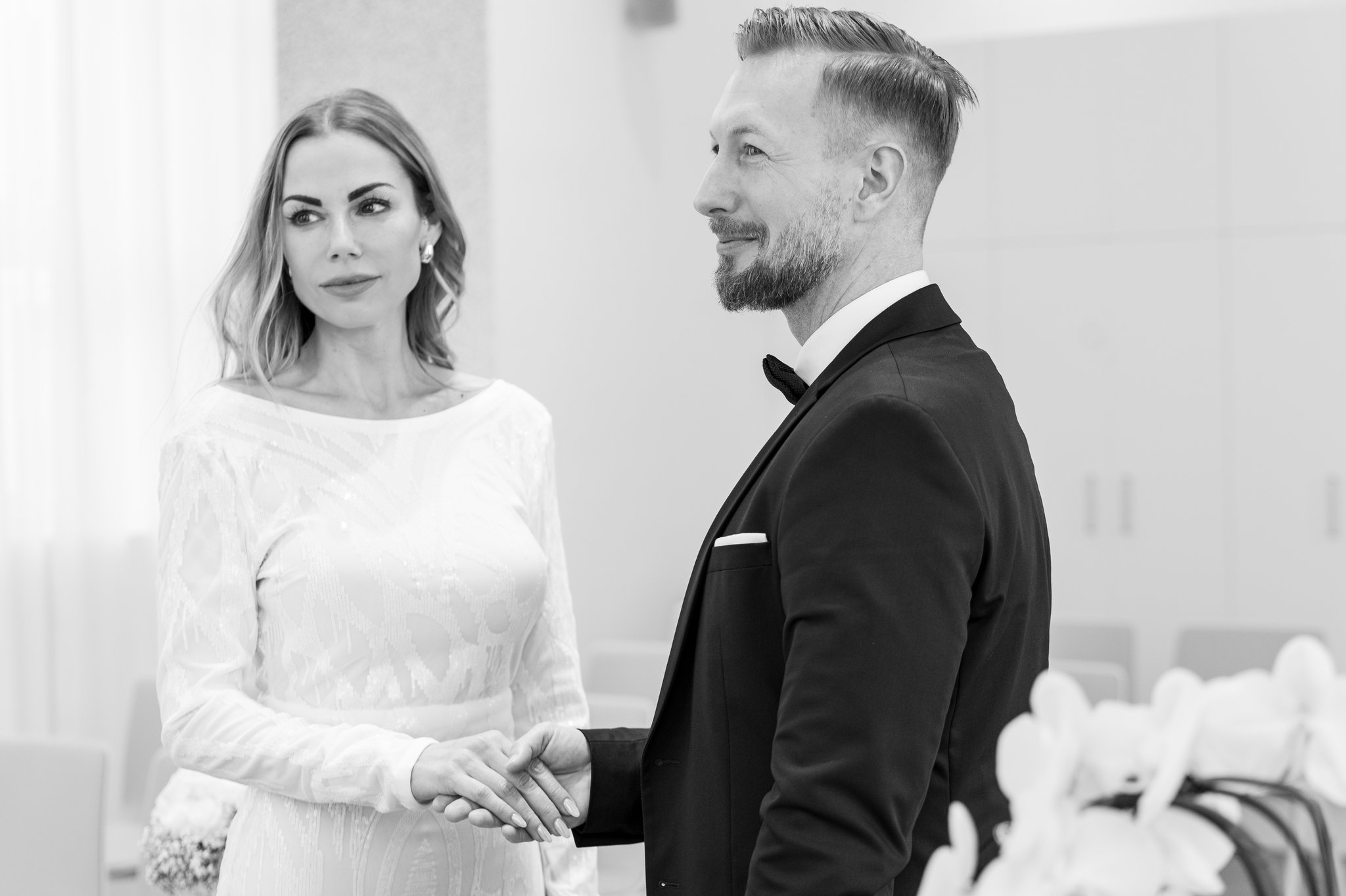 Ich bin bereit, jeden besonderen Moment festzuhalten: das Anschneiden der Torte, das Werfen des Brautstraußes und euren ersten Tanz. Aber auch die kleinen, oft übersehenen Augenblicke, wie verliebte Blicke oder ehrliche Lacher, sind mir wichtig.