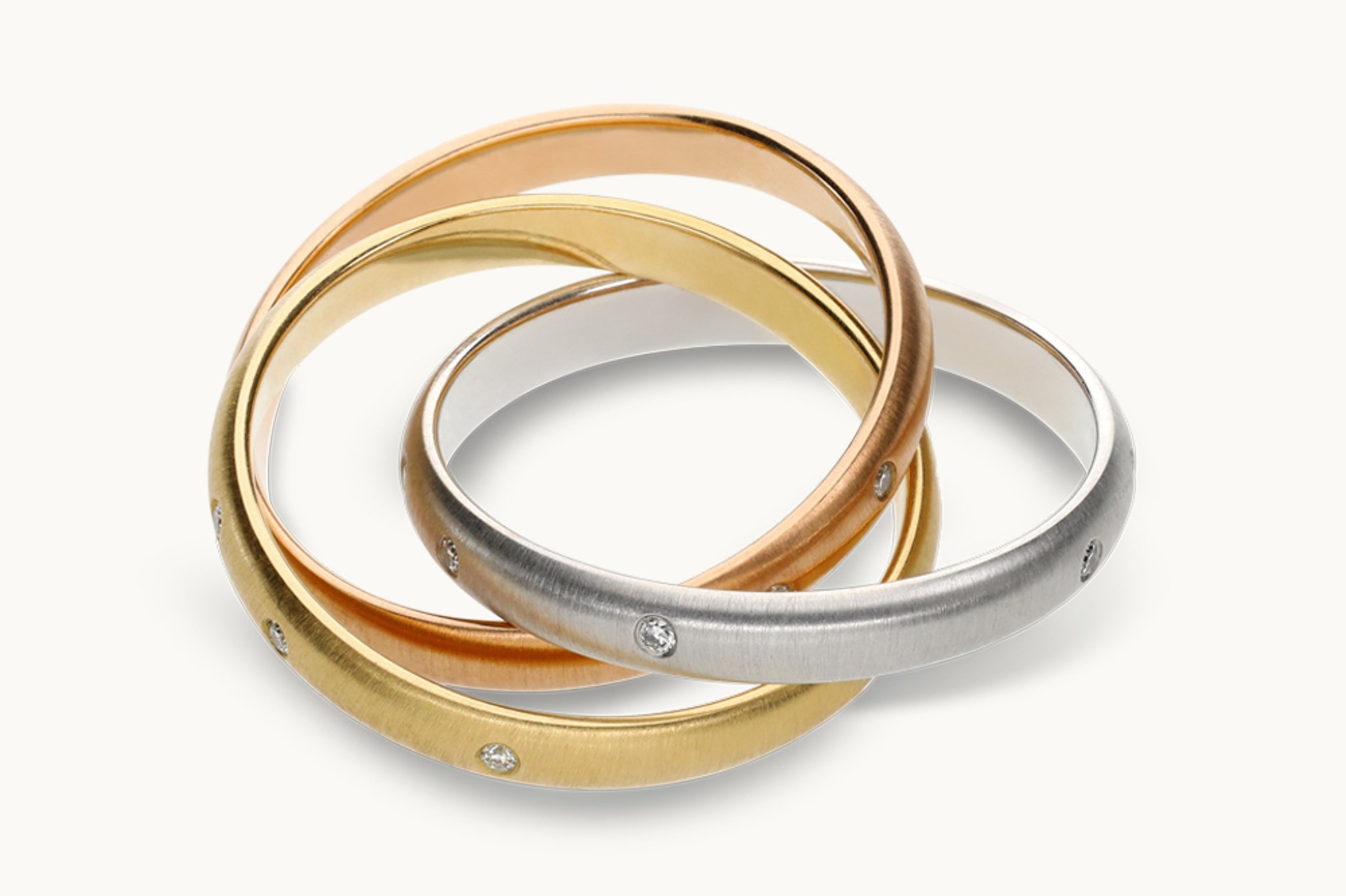 Trauringe fertigen wir in 585/750 Gold (Weiß-, Gelb-, Roségold/Haselnussgold je nach Ausführung) sowie in Platin. Ihr entscheidet über die Oberfläche – poliert, matt, eismatt, satiniert oder individuell bearbeitet und über die Form: klassisch, modern, markant oder filigran.