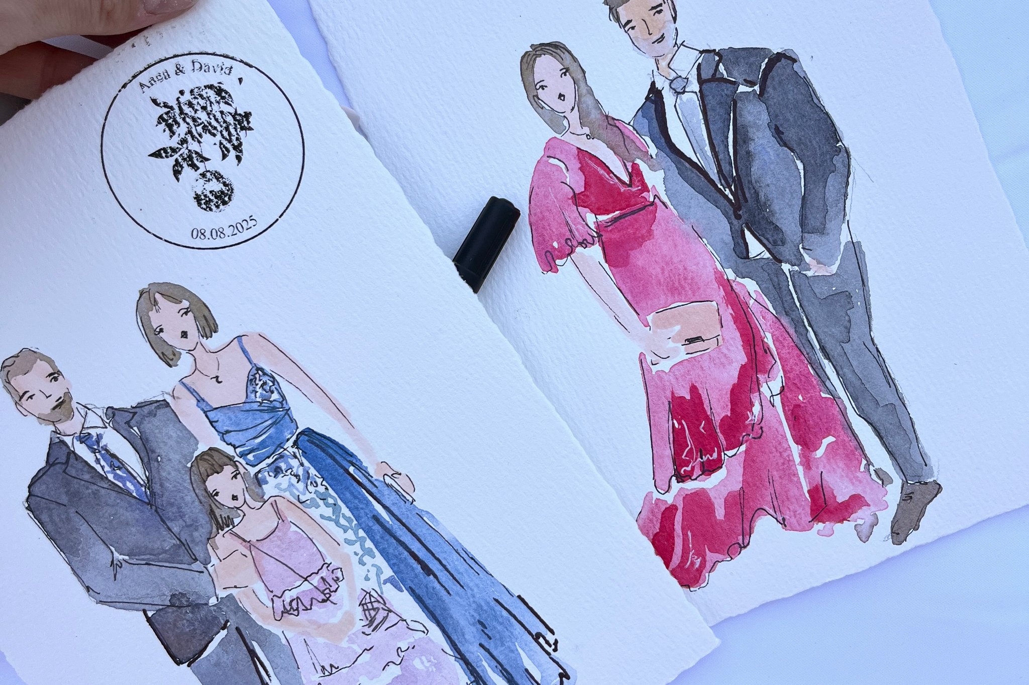 Ich arbeite nach dem Prinzip 'First come, first served' oder nach eurer Prioritätenliste (z.B. erst das Brautpaar und die Familie). Sollte die Zeit nicht für alle reichen, biete ich auch an, restliche Illustrationen nach dem Event im Atelier fertigzustellen.