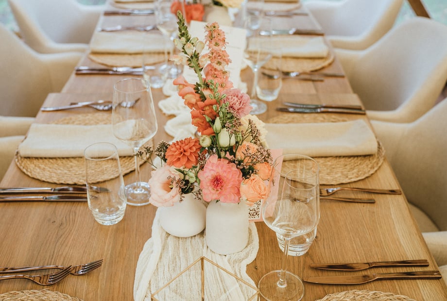 Ja. Mit unserem Hauseigenen Dekorationsservice ,,La Maison Coeur d’Or'' bieten wir euch Dekoration und Floristik direkt aus einer Hand. Von der ersten Idee über Farbkonzepte bis zur liebevollen Umsetzung am Hochzeitstag – alles abgestimmt auf eure Wünsche. Für euch bedeutet das: weniger Abstimmung, kurze Wege und ein stimmiges Gesamtbild.