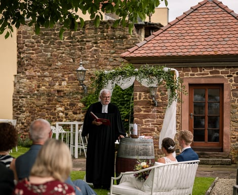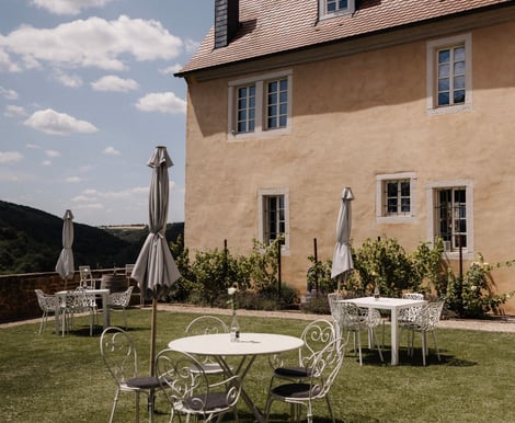 Für kleinere Hochzeiten öffnen wir ausgewählte Bereiche exklusiv für euch. Die charmante Orangerie, der idyllische Innenhof und der stimmungsvolle Kreuzgewölbekeller bilden ein harmonisches Zusammenspiel aus Romantik und Geschichte. Der Garten kann nach individueller Absprache für die freie Trauung oder den Empfang genutzt werden. So bleibt der Tag privat und gleichzeitig überschaubar und gemütlich – perfekt für intime Feiern voller Liebe und Nähe.