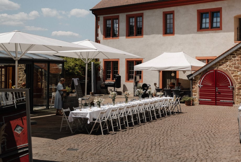 Wenn ihr euch für eine exklusive Hochzeit entscheidet, gehört die Alte Kellerei an eurem großen Tag nur euch. Ihr und eure Gäste genießen die volle Privatsphäre auf dem gesamten Anwesen: den weitläufigen Garten für freie Trauungen unter freiem Himmel, den romantischen Innenhof für den Sektempfang, die lichtdurchflutete Orangerie für ein festliches Beisammensein und den historischen Gewölbekeller für ausgelassene Feierlichkeiten bis in die Nacht. Jeder Raum, jede Ecke und jeder Moment ist nur für euch reserviert – so könnt ihr eure Feier völlig frei nach euren Vorstellungen gestalten.