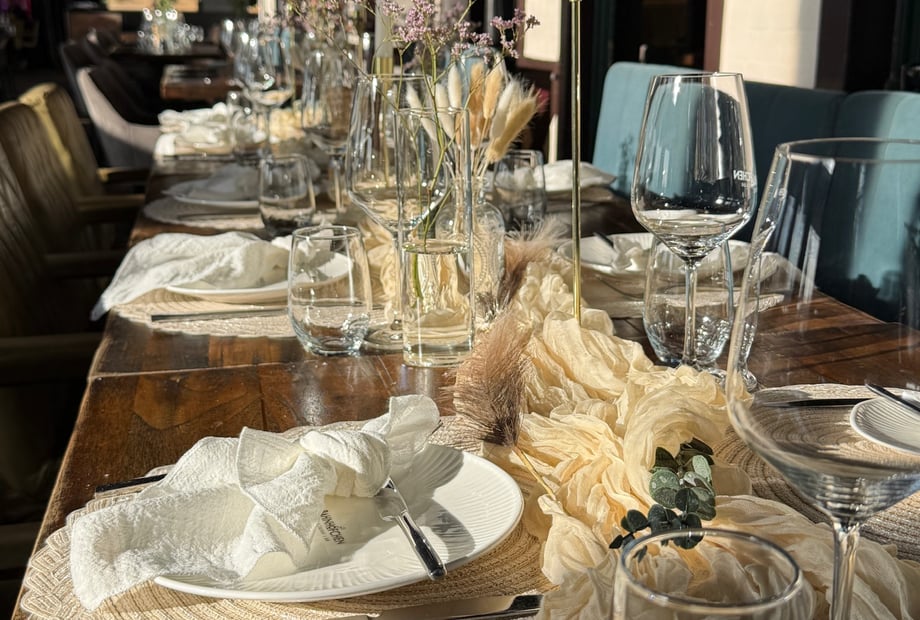 Suchen Sie nach dem perfekten Ort für Ihre Hochzeit? Das Bahnhöfchen am Bonner Rheinufer verbindet historischen Charme mit modernem Industrie-Stil – ideal für Paare, die eine besondere Atmosphäre lieben. Nach einer umfassenden Renovierung 2021 erstrahlt die denkmalgeschützte Location in stilvollem Ambiente mit dunklen Farbtönen, bequemen Samt- und Lederstühlen sowie einer gemütlichen, gehobenen Atmosphäre. Große Fensterfronten bieten Ihnen und Ihren Gästen einen atemberaubenden Blick auf den Rhein – egal ob im Sommer oder Winter.