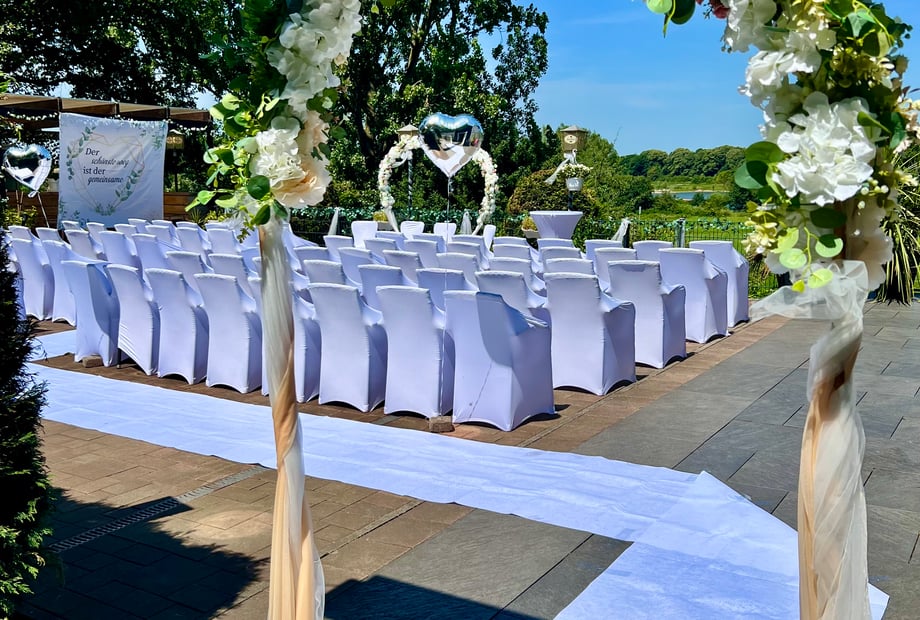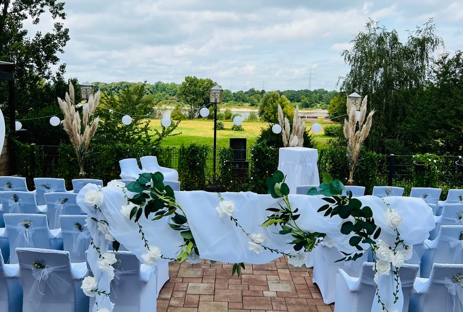 Feiern Sie Ihre freie Trauung direkt am Wasser – die natürliche Kulisse macht Ihren Moment des Ja-Worts besonders und unvergesslich. Anschließend genießen Sie mit Ihren Gästen den Empfang auf der Terrasse, während die Sonne langsam untergeht. Für die Party danach stehen eine Tanzfläche und ein Soundsystem bereit, damit Sie bis in die Nacht feiern können.