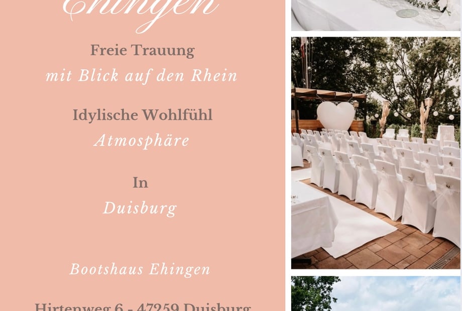 Sie träumen von einer Hochzeit, die entspannt, stilvoll und naturnah ist? Das Bootshaus Ehingen in Duisburg bietet Ihnen genau das: eine traumhafte Lage direkt am Wasser, kombiniert mit modernem Ambiente. Hier schaffen Sie gemeinsam mit Ihren Liebsten Erinnerungen, die ein Leben lang halten.
