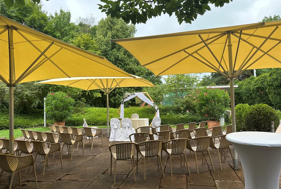 ohne Sperrstunde, Caterer frei, Getränke frei, eigene Dienstleister wählbar, standesamtliche und freie Trauungen im Grünen